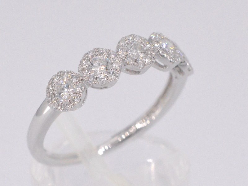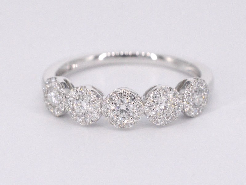 Product: Witgouden ring met diamanten Specificaties: Diamant: Natuurlijk Aantal: 5 stuks Slijpvorm: Briljant geslepen Gewicht (carat): 0.30 carat Kleur: F-G Zuiverheid: VS Slijpkwaliteit: Zeer mooi Diamant (secundair): Diamanten entourage Aantal diamanten: 45 stuks Slijpvorm: Briljant geslepen Gewicht (carat): 0.25 carat Kleur: F-G Zuiverheid: VS Slijpkwaliteit: Very good Juweel: Ring Gewicht: 2.3 gram Ringmaat (op maat gemaakt*): 53 (17 mm) Materiaal: 18K goud (750) Conditie: Nieuw Verpakking: Luxe sieradendoos Toelichting: De kwaliteit is overgenomen van het rapport behorend bij item. De waardebepaling is een beoordeling van een gecertificeerde diamantair, gebaseerd op consumentenprijzen. Consumentenprijs: € 4.708,-