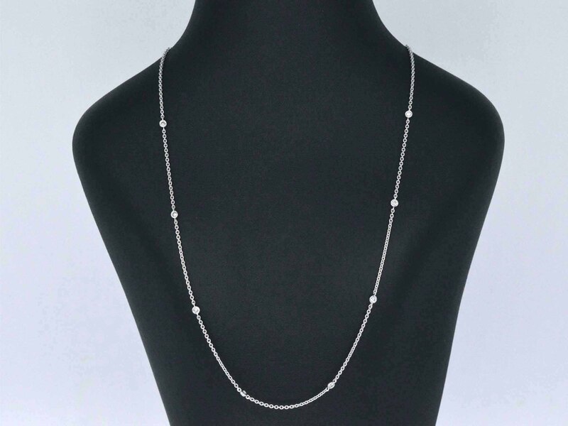 Product: Witgouden ketting met 8 briljant geslepen diamanten Specificaties: Diamant: Natuurlijk Slijpvorm: Briljant geslepen Gewicht (carat): 0.25 carat Kleur: F-G Zuiverheid: VS Slijpkwaliteit: Zeer mooi Juweel: ketting Gewicht: 4 gram Afmetingen/lengte: 42 - 42,5 cm(vestelbaar) Materiaal: 18K goud (750) Conditie: Nieuw Verpakking: Luxe sieradendoos Toelichting: De kwaliteit is overgenomen van het rapport behorend bij item. De waardebepaling is een beoordeling van een gecertificeerde diamantair, gebaseerd op consumentenprijzen. Consumentenprijs: € 4.148,-