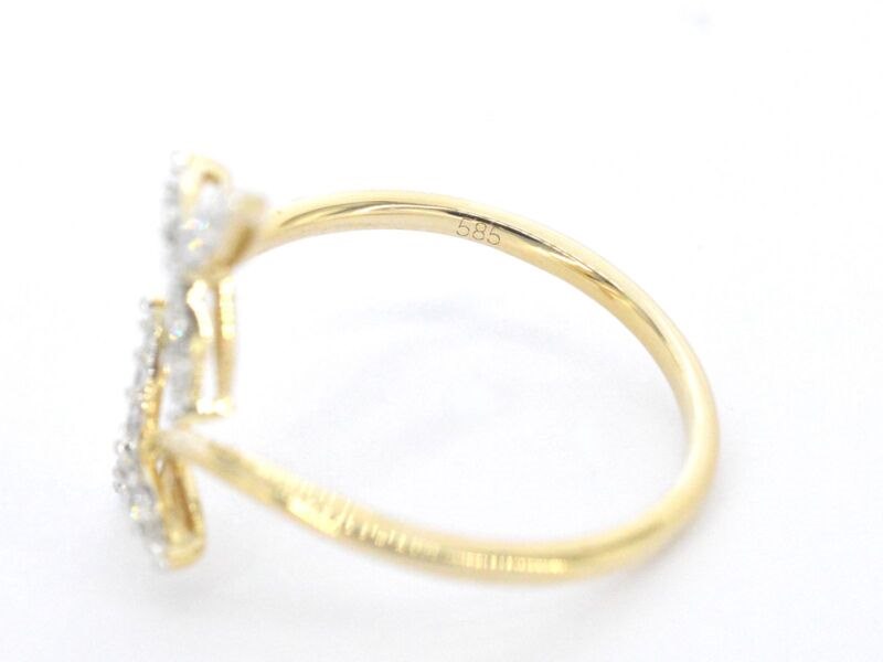 Product: Gouden ring met diamanten Specificaties: Diamant: Natuurlijk Aantal: 18 stuks Slijpvorm: Briljant en rond geslepen Gewicht (carat): 0.15 carat Kleur: F-G Zuiverheid: SI-P Slijpkwaliteit: Zeer mooi Juweel: Ring Gewicht: 1.8 gram Ringmaat (op maat gemaakt*): 55 (17.5 mm) Materiaal: 14k goud (585) Conditie: Nieuw Verpakking: Luxe sieradendoos Toelichting: De kwaliteit is overgenomen van het rapport behorend bij item. De waardebepaling is een beoordeling van een gecertificeerde diamantair, gebaseerd op consumentenprijzen. Consumentenprijs: € 1.278,-