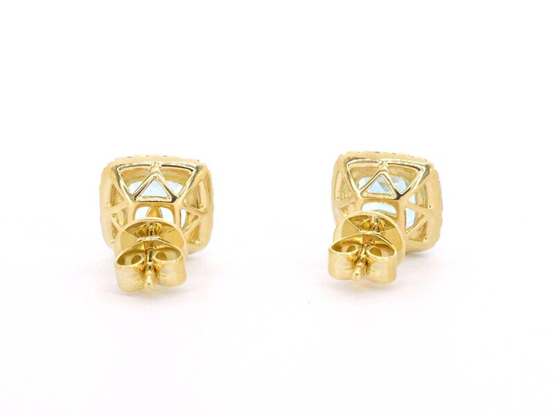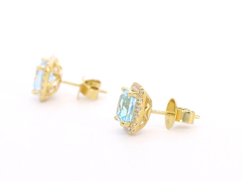Product: Gouden entourage oorbellen met grote topazen en diamanten Specificaties: Diamant: Natuurlijk Aantal: 40 stuks Slijpvorm: Briljant geslepen Gewicht (carat): 0.45 carat Kleur: F-G Zuiverheid: VS Slijpkwaliteit: Zeer mooi Edelsteen: Topaas Aantal: 1 stuk Slijpvorm: Kussenvormig Gewicht (carat): 4.60 carat Kleur: Swiss blue Juweel: Oorbellen Gewicht: 3.5 gram Afmetingen/lengte: 10 x 11 mm Materiaal: 18K goud (750) Conditie: Nieuw Verpakking: Luxe sieradendoos Toelichting: De kwaliteit is overgenomen van het rapport behorend bij item. De waardebepaling is een beoordeling van een gecertificeerde diamantair, gebaseerd op consumentenprijzen. Consumentenprijs: € 4.935,-