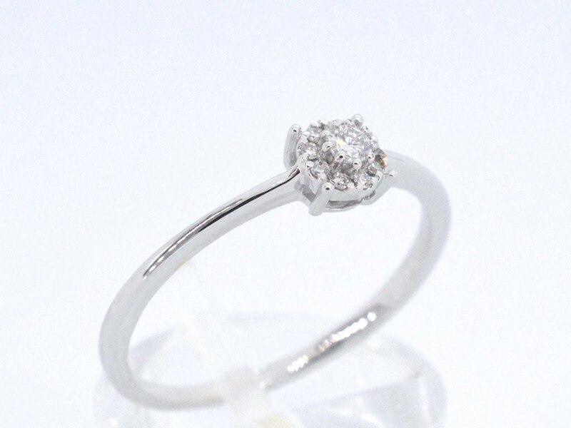 Product: Witgouden ring met briljant geslepen diamant Specificaties: Diamant: Natuurlijk Slijpvorm: Briljant geslepen Gewicht (carat): 0.10 carat Kleur: F-G Zuiverheid: VS-SI Slijpkwaliteit: Zeer mooi Juweel: Ring Gewicht: 1.7 gram Ringmaat (op maat gemaakt*): 54 (17.25 mm) Materiaal: 14 karaat (585) Conditie: Nieuw Verpakking: Luxe sieradendoos Toelichting: De kwaliteit is overgenomen van het rapport behorend bij item. De waardebepaling is een beoordeling van een gecertificeerde diamantair, gebaseerd op consumentenprijzen. Consumentenprijs: € 1.190,-