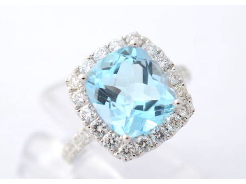 Product: Witgouden entourage ring met natuurlijke topaas en diamanten Specificaties: Diamant: Natuurlijk Slijpvorm: Briljant geslepen Gewicht (carat): 1.00 carat Kleur: F-G Zuiverheid: VS Slijpkwaliteit: Zeer mooi Edelsteen: Topaas Slijpvorm: Kussenvorm geslepen Gewicht (carat): 5.50 carat Kleur: Swiss blue Zuiverheid: Met natuurlijke insluitsels Juweel: Ring Gewicht: 5.2 gram Ringmaat (op maat gemaakt*): 53 (17 mm) Materiaal: 18K goud (750) Conditie: Nieuw Verpakking: Luxe sieradendoos Toelichting: De kwaliteit is overgenomen van het rapport behorend bij item. De waardebepaling is een beoordeling van een gecertificeerde diamantair, gebaseerd op consumentenprijzen. Consumentenprijs: € 6.948,-