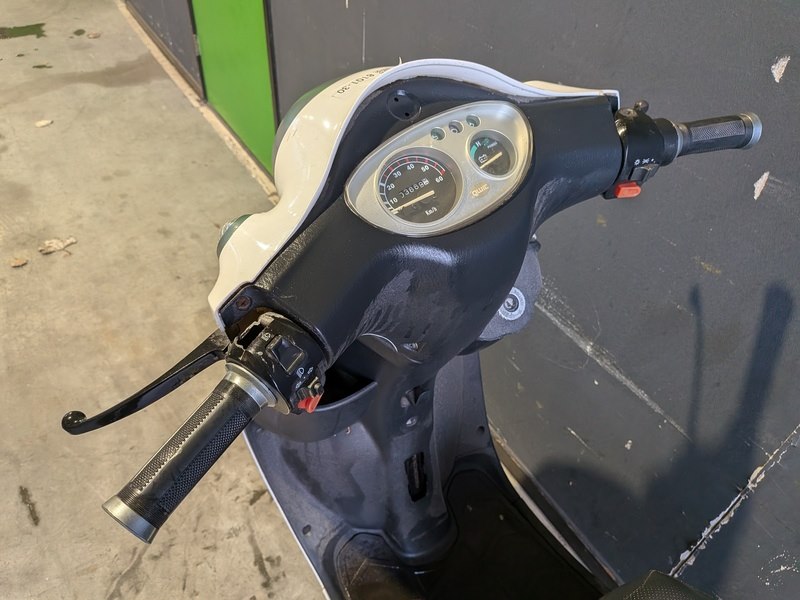 Merk: EVADER Product: Scooter BouwJaar: 2011 Conditie: Gebruikt Specificaties: Basiskenmerken Kenteken: D-322-XR Chassisnummer (VIN) : LP5TAHZG4A000363 Datum eerste toelating: 20 april 2011 Afgelezen tellerstand: 3.669 km Aantal zitplaatsen: 2 Motor & Prestaties Brandstof: Elektrisch Motorcode: TM-WZ1.5KW Continue vermogen: 1,5 kW Constructiesnelheid: 25 km/u Maten & Gewichten Wielbasis: 1.280 mm Massa rijklaar: 128 kg Max. massa voertuig: 278 kg