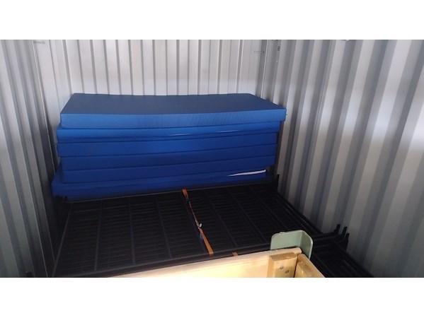 Product: (Locatie Raalte) ca. 45x bedframe en 12x matras Specificaties: Afmetingen Matras (LxB) : ca. 2.000 x 900 mm Buitenwerk bed (LxB) : ca. 2.050 x 930 mm Hoogte kopschot: ca. 750 mm Hoogte bovenzijde bedbodem: ca. 750 mm inclusief kratten en metalen bok ( deze zijn gebruikt voor intern transport bedden ) Let op! Exclusief zeecontainer
