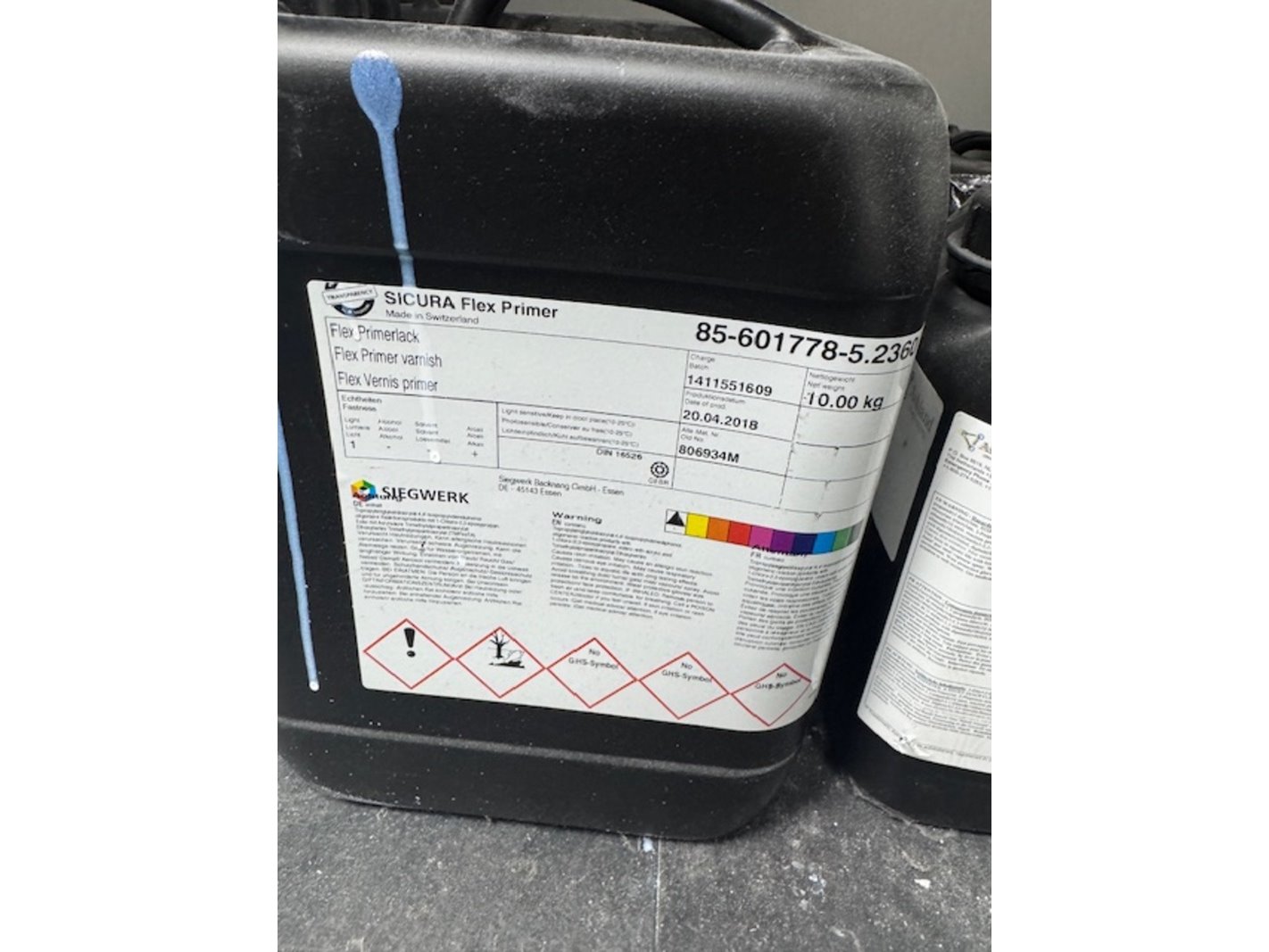 Merk: Ashland en Sicura Product: Coating primer Afmeting: 10kg en 5kg Specificaties: 4x Purekote 29101 g;oss primer, 6x purekote 29100 matt primer, 1x sicura flex primer, 2x purerad l2050e coating