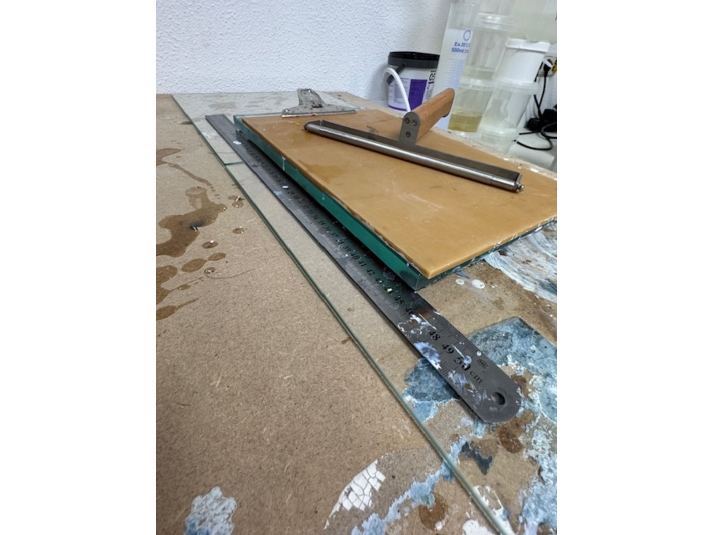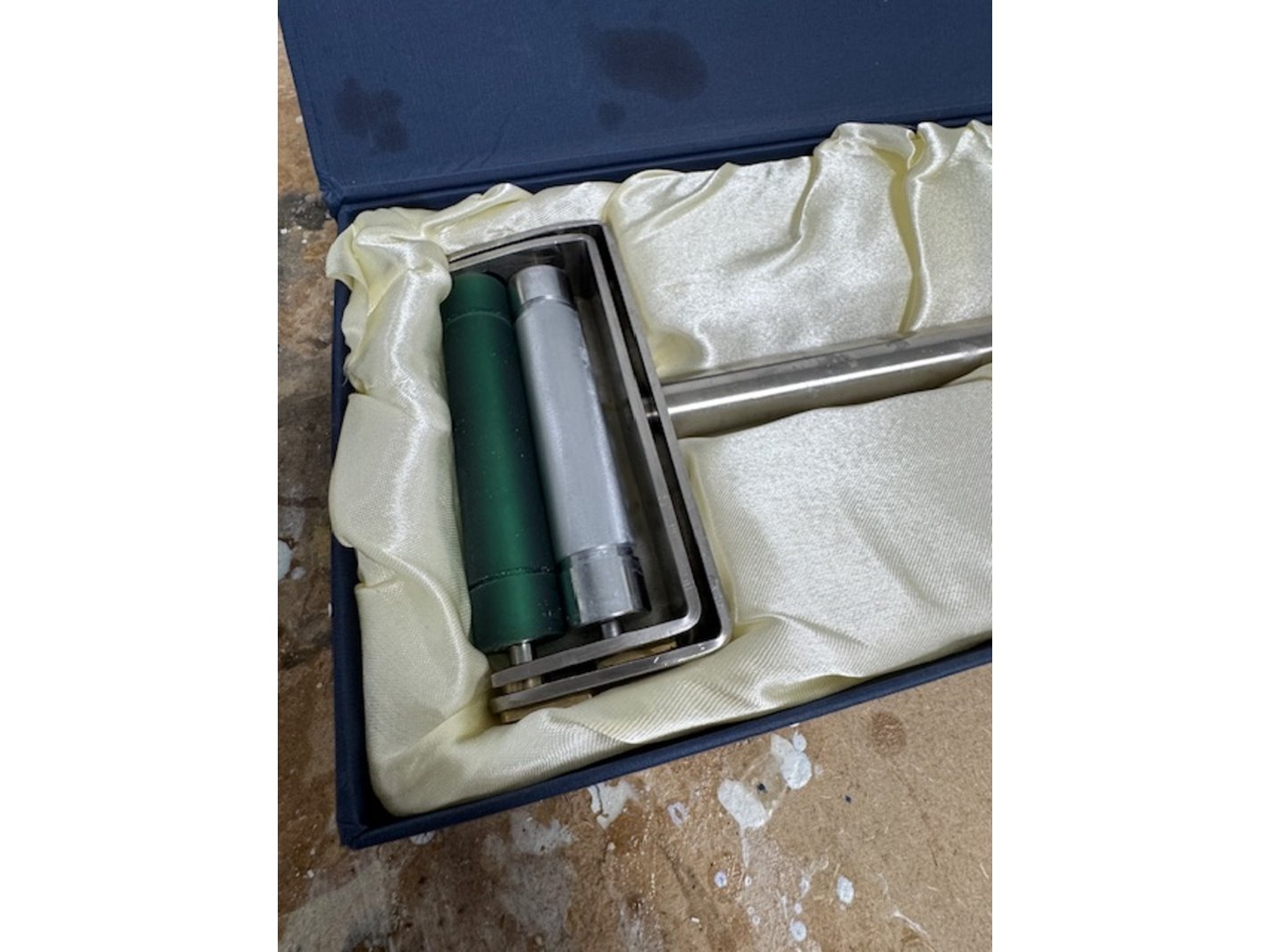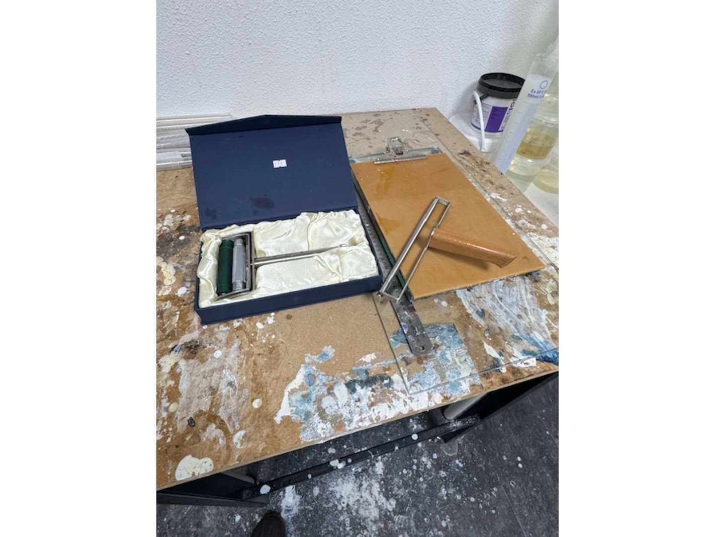 Product: hand ink proofer en spral-bar applicator Specificaties: in doos, diverse toebehoren, glazen platen en rvs meetlat