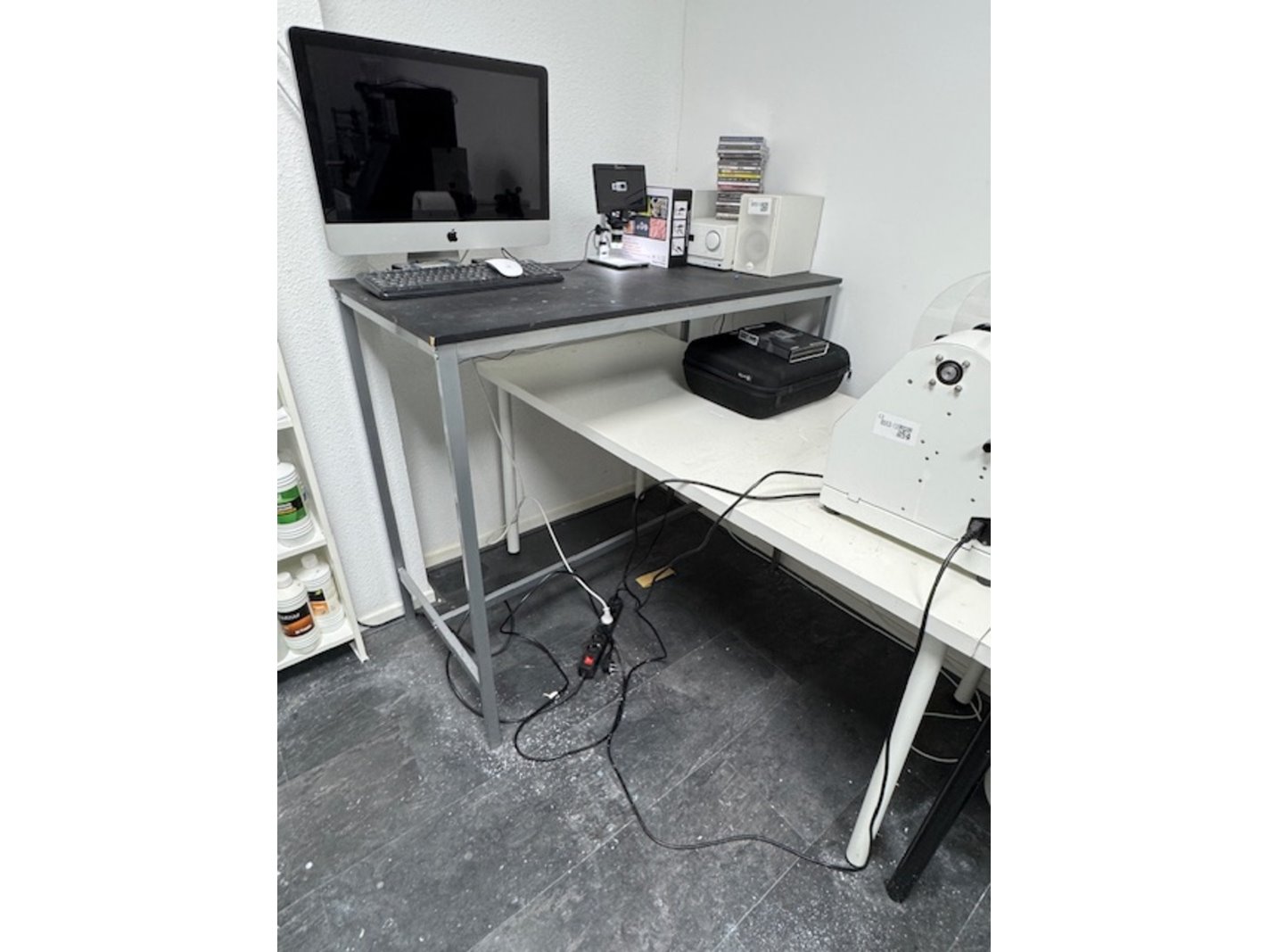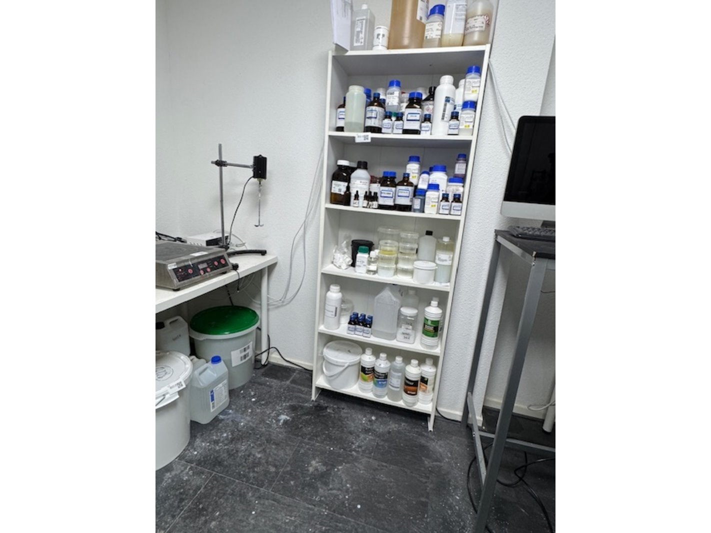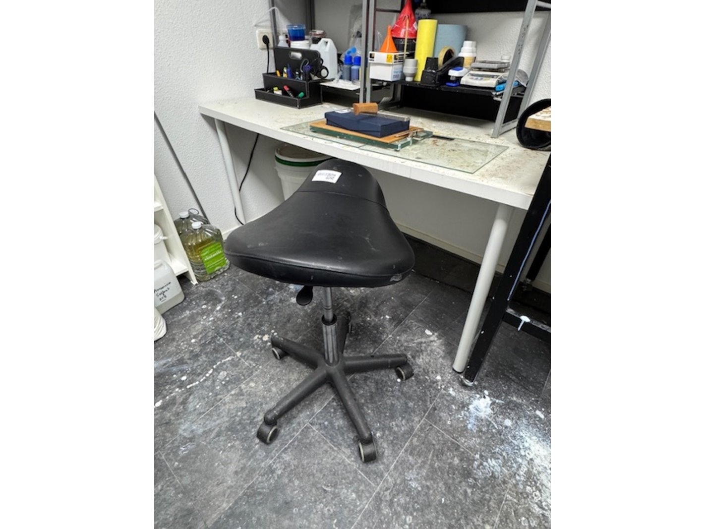 Product: inrichting laboratorium Specificaties: o.a.: zadelkruk; werktafel verrijdbaar, 4x tafel, 2x wandkast etc.