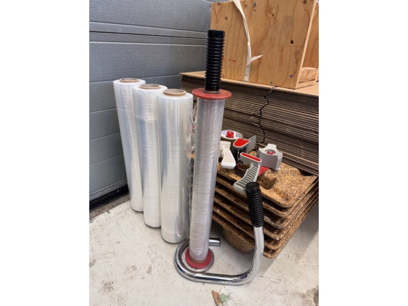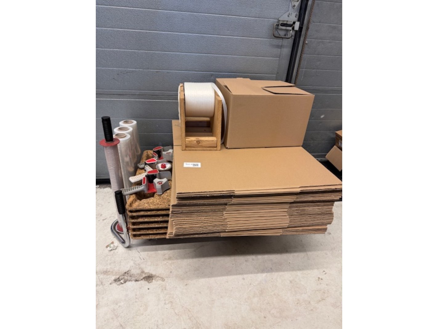 Product: verpakkingsmateriaal Specificaties: o.a. vouwdozen 40x40x26cm, stapelpallets 60x80cm, krimpfolie en tapdispensers