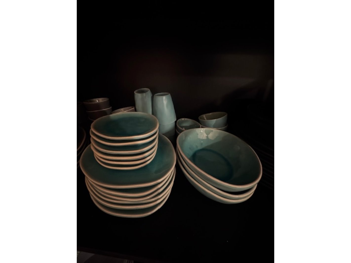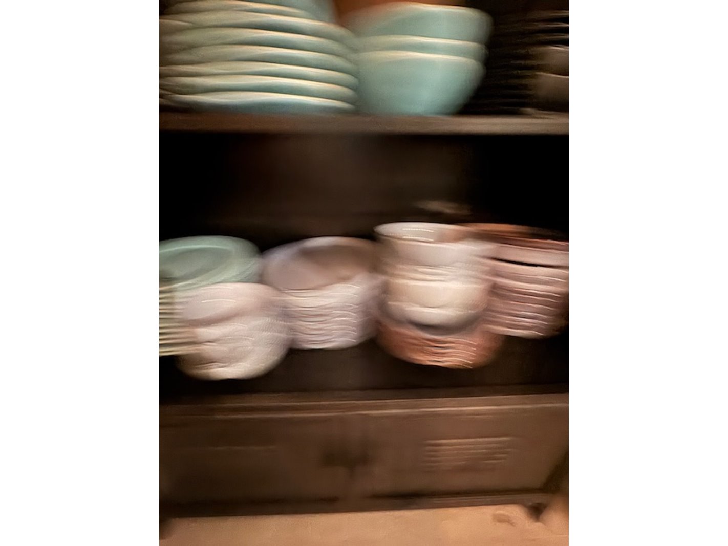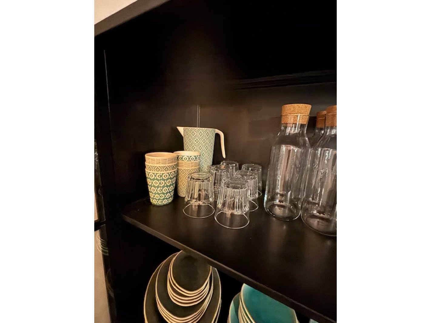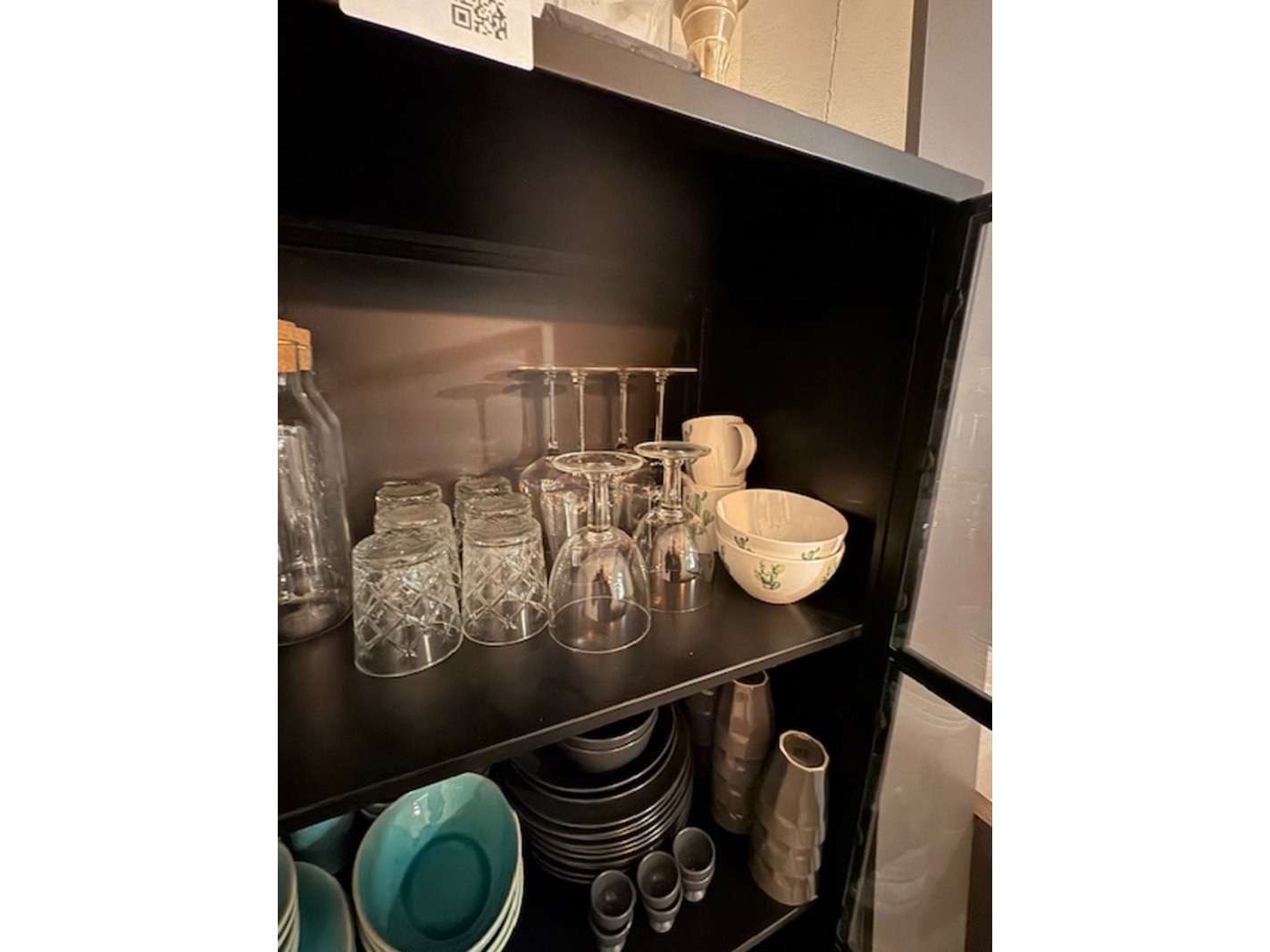 Wandkast met glaswerk en serviesgoed, staal