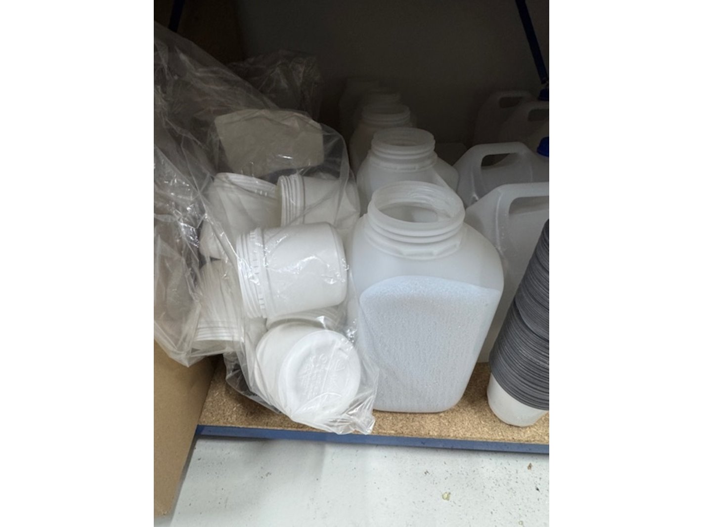 Product: verpakkingsmateriaal Specificaties: diverse flesjes, doppen, potjes, jerrycans etc