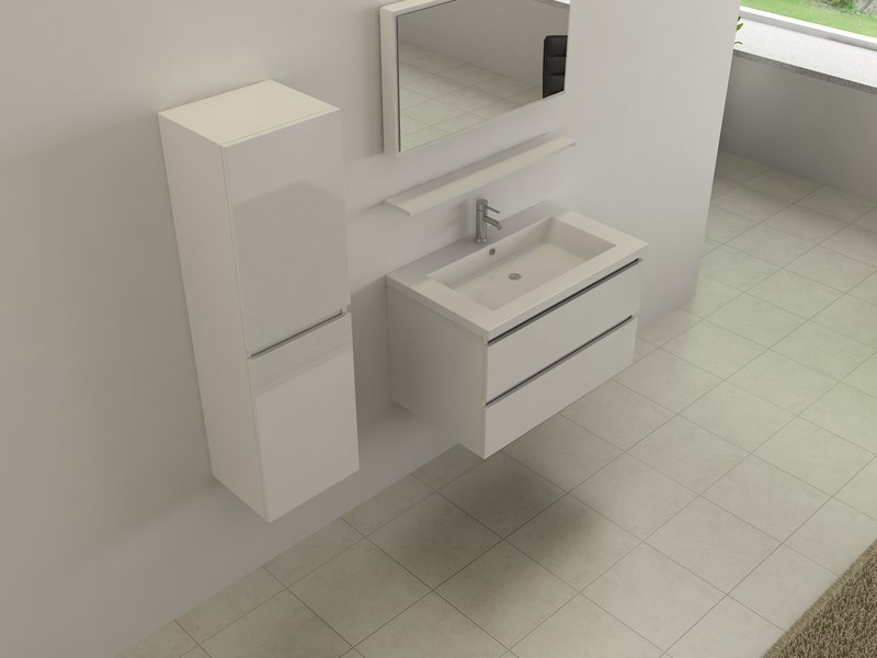 Merk: Vonato Product: Badkamermeubel Kleur: hoogglans wit Materiaal: 18mm MFC Conditie: nieuw Specificaties: Type: HAVIKLUXWM-2-60. Model: Badkamermeubel 60 cm - hoogglans wit met witte wasbak. Afmetingen: 1 * Wastafelmeubel - 600x460x520mm, 1 * Wasbak – 600x450x160mm (rand 3 cm), 1 * Zijkast - 1500x350x350mm, 1 * Spiegelkast - 600x450x180mm, Voorzien van: Kraan inclusief pop-up drain – 2 lades - Softclose systeem op deurtjes en lades - giethars wasbak – LED verlichting boven de spiegel – Spiegelkast met 2 deurtjes en 1 plank - Voorgemonteerde zijkasten en wastafelmeubel.