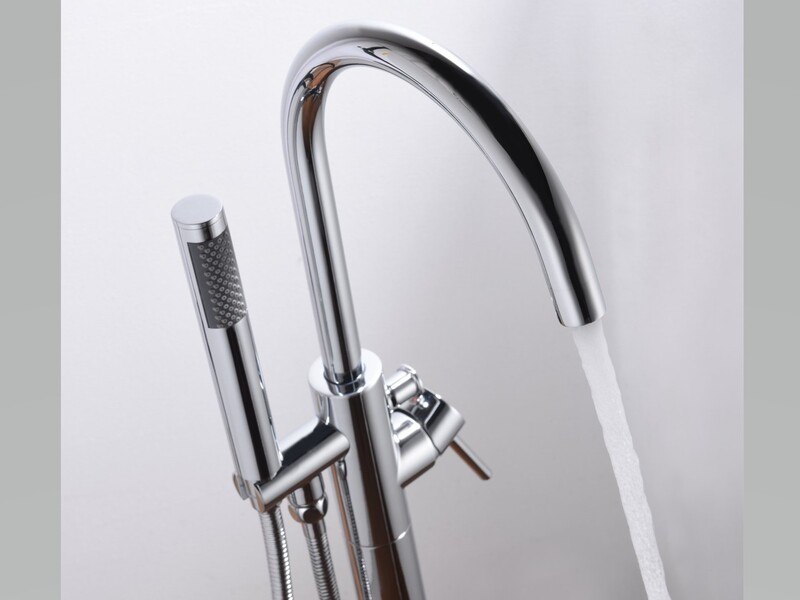 Merk: Vonato Product: Bad kraan Kleur: zilverkleurig Materiaal: RVS, messing Conditie: nieuw Specificaties: Type: FAUCET CHROME. Voorzien van: Uitneembare handdouche - Buis, handdouche en beugel van messing - 360 graden draaibare uitloop.