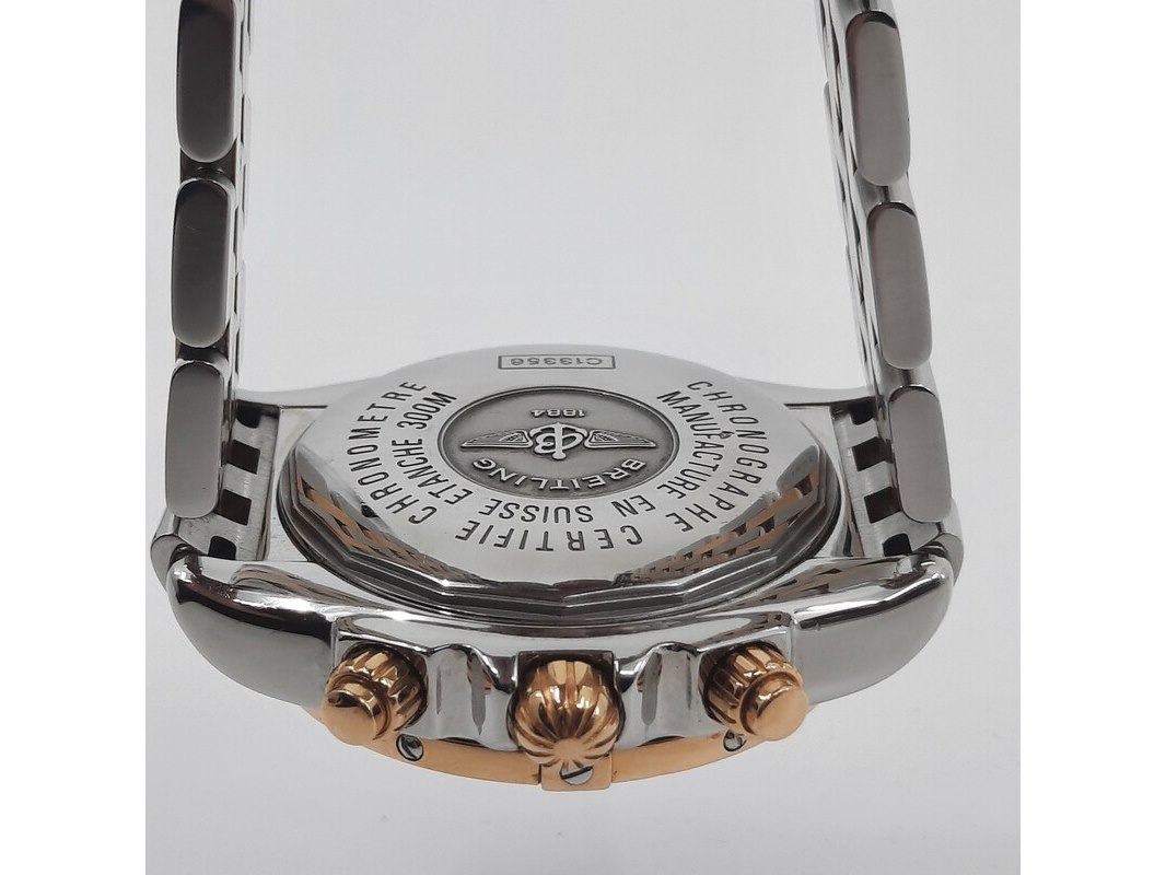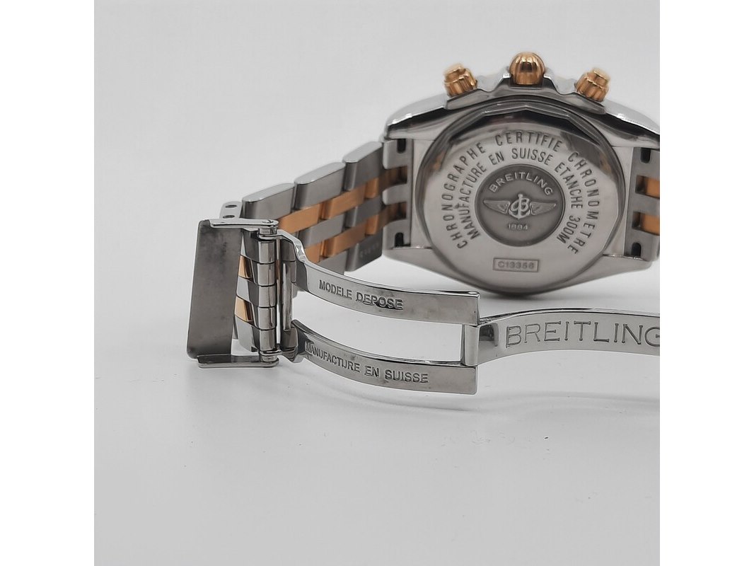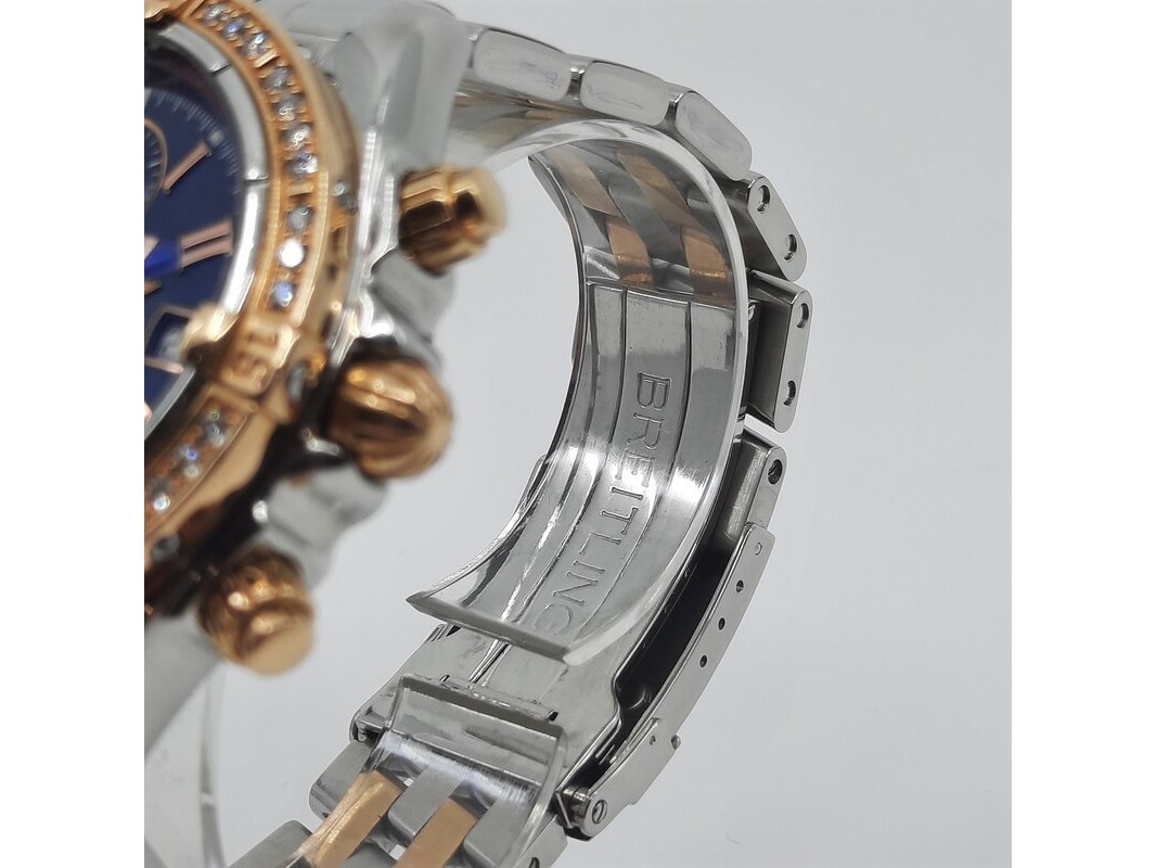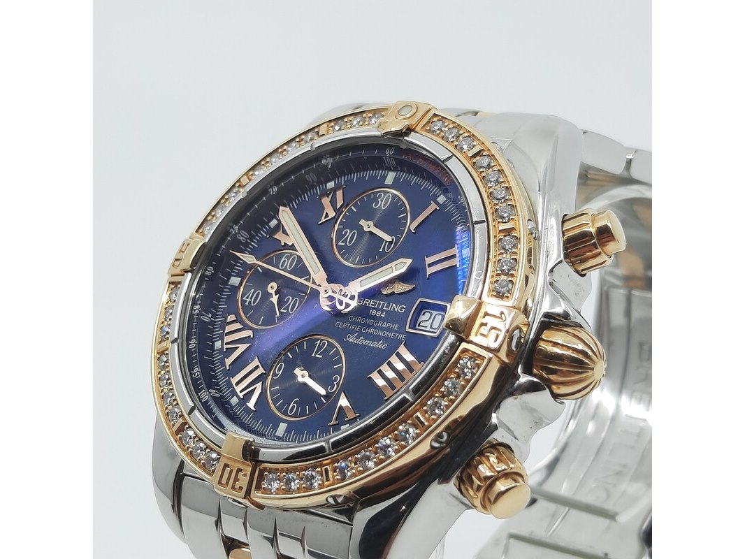 Merk: Breitling Product: Heren polshorloge Conditie: gebruikt Specificaties: Een staal met geelgouden heren polshorloge, Breitling Chronomat Evolution C13356. Met blauwe wijzerplaat en staal met geelgouden band. Geen doos en geen certificaat.