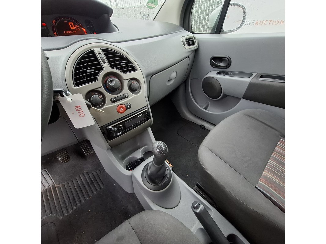 Merk: Renault Product: Personenauto BouwJaar: 2008 Conditie: gebruikt Specificaties: Kenteken: 49-HJG-8 Eerste toelating nationaal: 10-12-2008 APK vervaldatum: 18-07-2025 Brandstof: Benzine Afgelezen tellerstand: 218.990 Transmissie: Handgeschakeld, 5 versnellingen Aantal sleutels: 2 VIN nummer: VF1JP0WF539962891 Start: ja Opties e.d. Elektrische ramen en spiegels Airconditioning Radio Trekhaak Waargenomen gebreken Deukje achterbumper Interieur vuil / hondenharen
