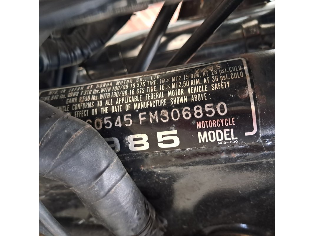 Merk: Honda Product: Motor BouwJaar: 1985 Conditie: gebruikt Specificaties: Kenteken: ML-92-VG Eerste toelating nationaal: 31-12-1991 Geïmporteerd Brandstof: Benzine Afgelezen tellerstand: 15.680 Aantal sleutels: 1 VIN: JH2PC0545FM306850 Start: Ja Waargenomen gebreken Gebruikssporen rondom