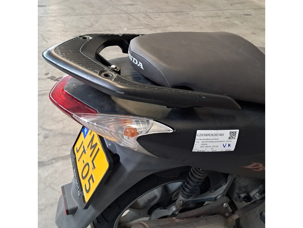 Merk: Honda Product: Motorscooter BouwJaar: 2004 Conditie: gebruikt Specificaties: Kenteken: ML-JT-05 Eerste toelating nationaal: 14-05-2004 Brandstof: Benzine Afgelezen tellerstand: 34.214 Aantal sleutels: 2 VIN: ZDCKF05A04F071572 Start: Nee, waarschijnlijk door lage accuspanning Waargenomen gebreken Gebruikssporen rondom Voorste kap zit los Remhendel verbogen Linker spiegel ontbreekt Buddyseat gescheurd