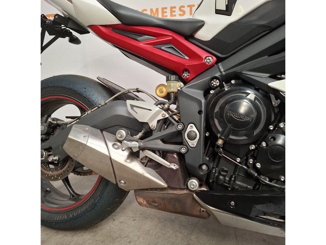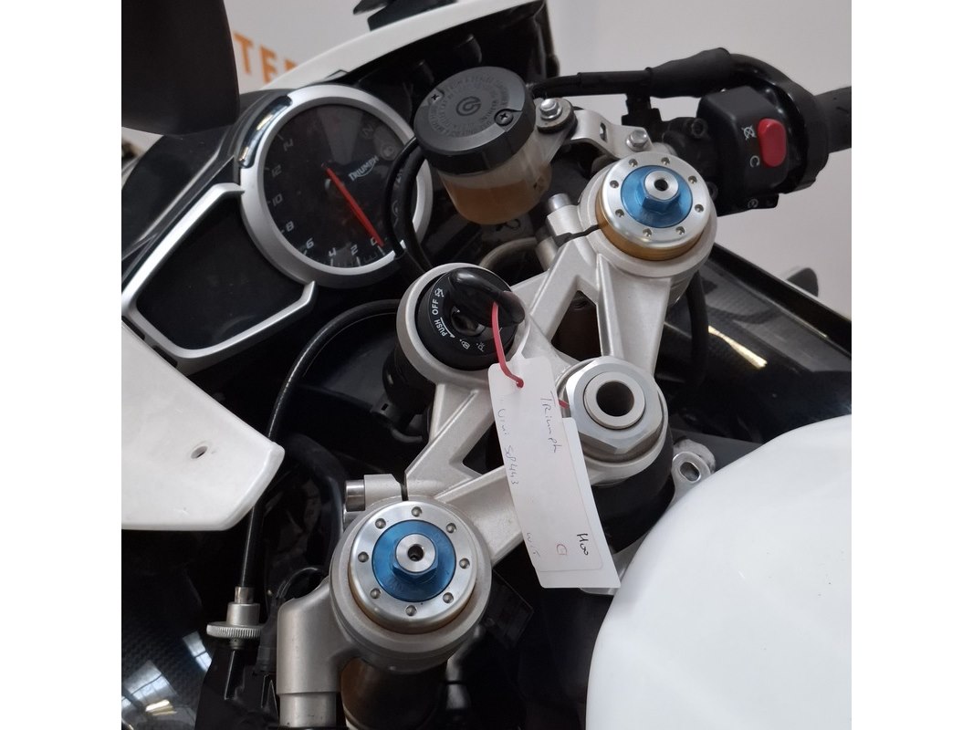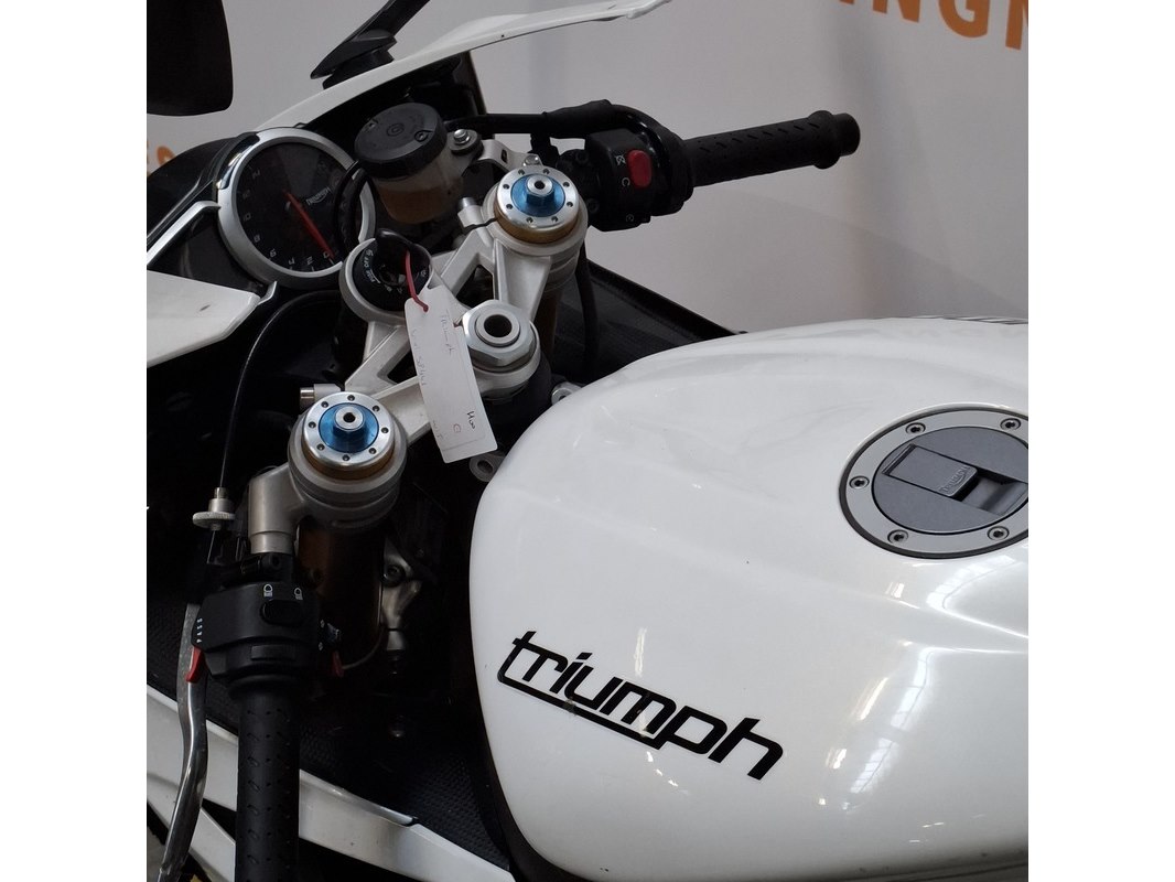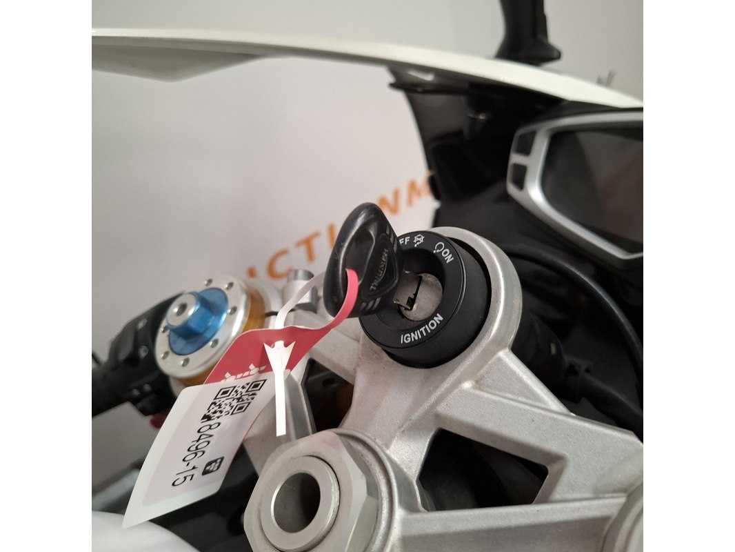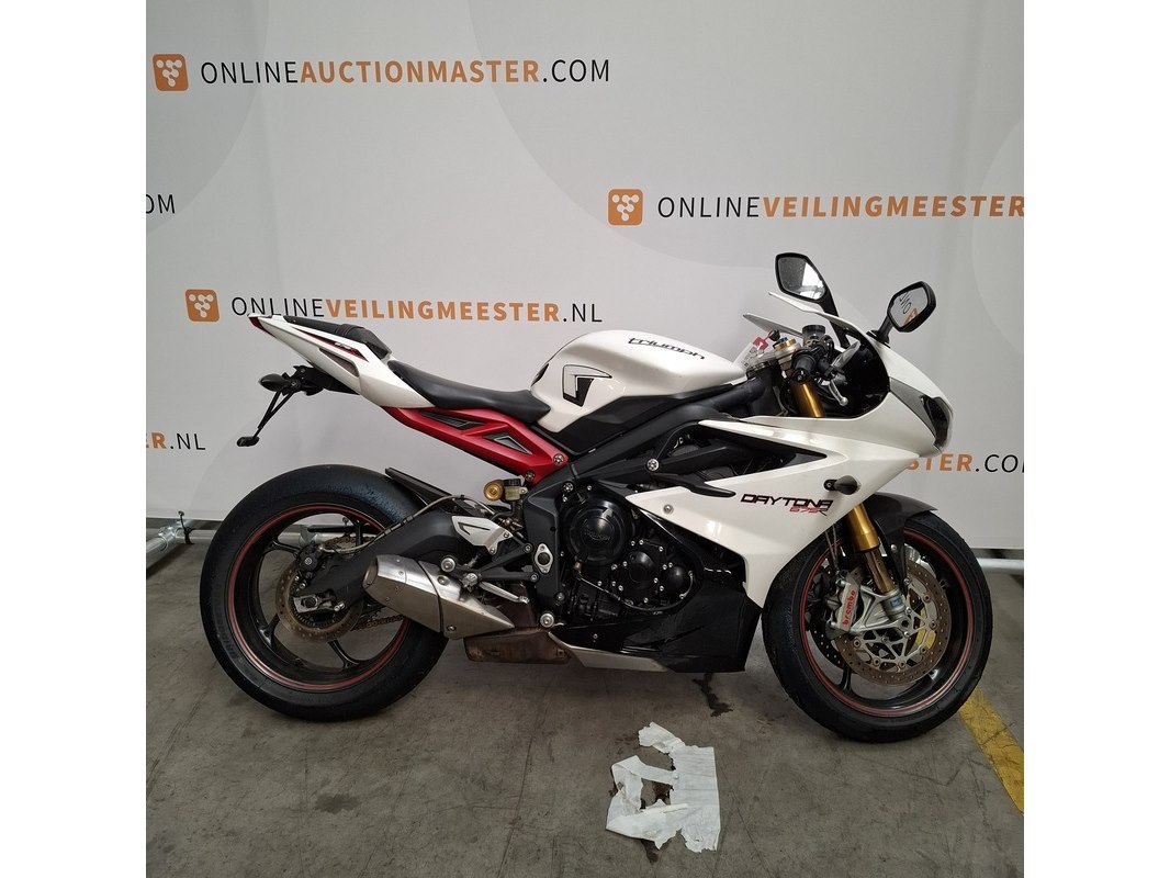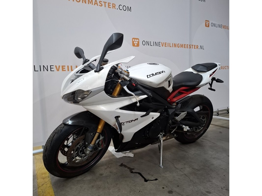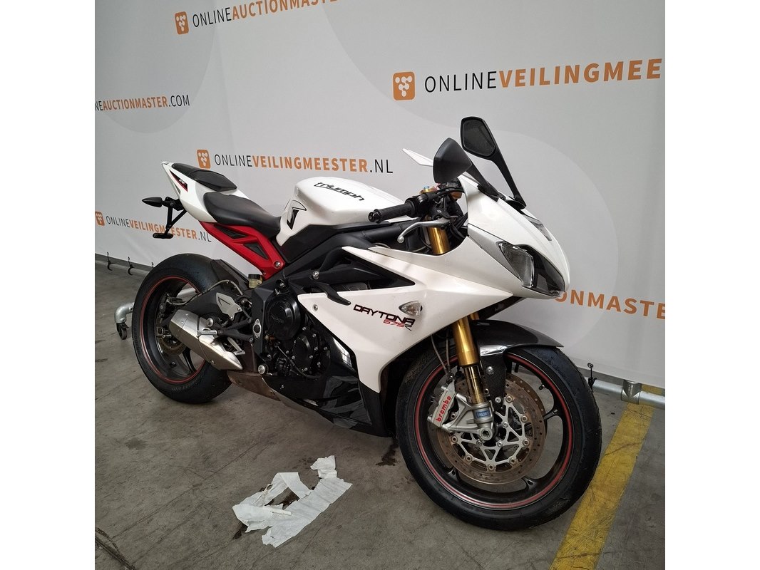 Merk: Triumph Product: Motorfiets Conditie: gebruikt Specificaties: Kenteken: Niet geregistreerd Eerste toelating nationaal: Niet geregistreerd Brandstof: Benzine Afgelezen tellerstand: Onbekend Aantal sleutels: 1 VIN: SMTTTA14FAD586500 Start: Nee Waargenomen gebreken Gebruikssporen rondom. Buddyseat beschadigd. Richtingaanwijzer beschadigd. Voertuig is op het circuit gebruikt; de banden hebben rubber op elkaar en lekt olie. Goedkeuring op basis van buitenlandse goedkeuring binnen de EU