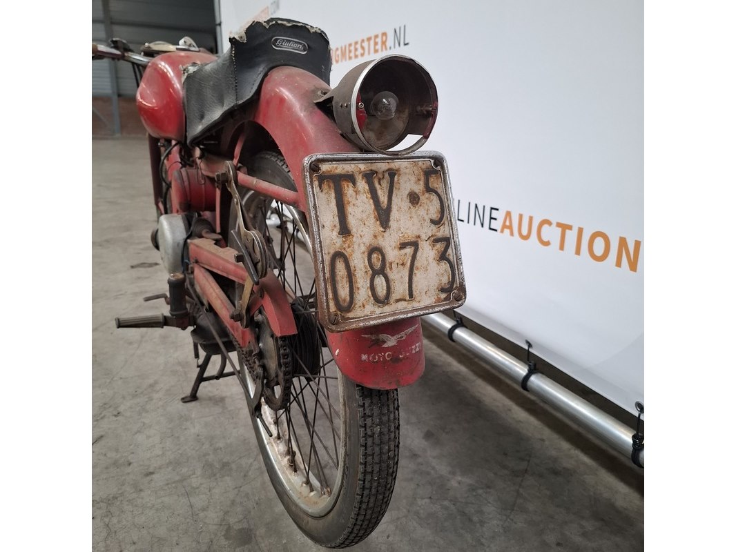 Merk: Moto Guzzi Product: Motorfiets Conditie: gebruikt Specificaties: Kenteken: Niet geregistreerd Eerste toelating nationaal: Niet geregistreerd Brandstof: Benzine Afgelezen tellerstand: Onbekend Aantal sleutels: 0 VIN: BCG091 Start: Nee Waargenomen gebreken Gebruikssporen rondom Diverse beschadigingen en roestvorming, zie foto's. Buddyseat in slechte staat.