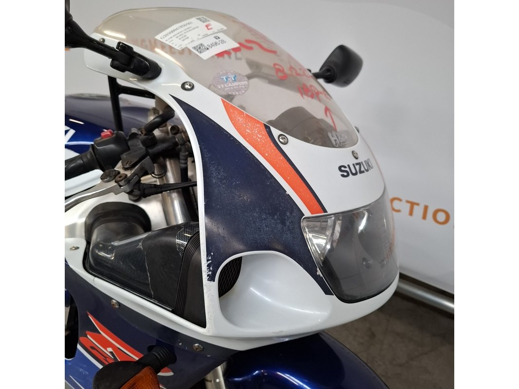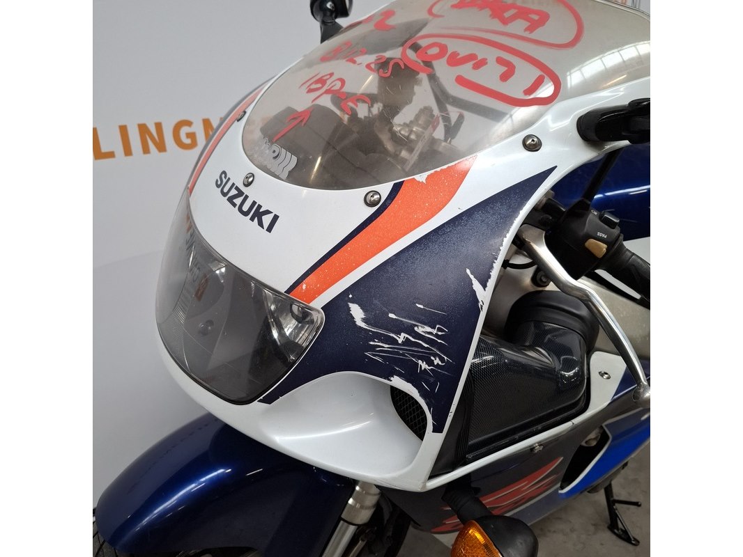 Merk: Suzuki Product: Motorfiets BouwJaar: 1996 Conditie: gebruikt Specificaties: Kenteken: ML-DS-21 Eerste toelating nationaal: 21-05-2004 Brandstof: Benzine Afgelezen tellerstand: 45.524 Aantal sleutels: 1 VIN: JS1GR7DB000503098 Start: Onbekend Waargenomen gebreken Gebruikssporen rondom Diverse schaafschades, zie foto's