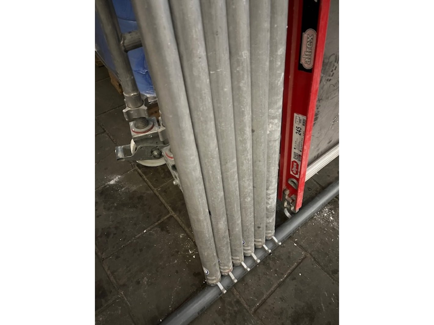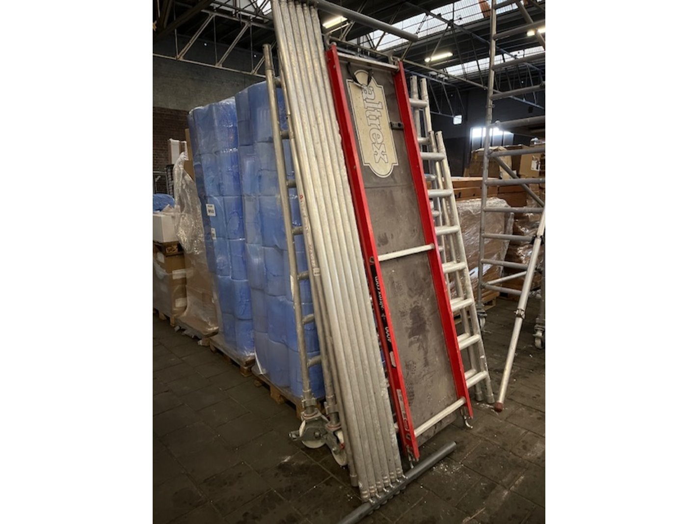 Merk: Altrex Product: Rolsteigerplatform RS tower 42 hxb ca. 400x135 cm Conditie: gebruikt Specificaties: Altrex rolsteigerplatform RS tower 42 1.35cm breed en ca. 4m hoog Voorzien van 4 staanders en 1x werkplatform en diverse stangen.