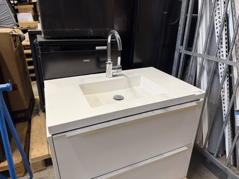 Merk: Saqu Salto Product: Badkamermeubel met kraan 80x52 cm Conditie: gebruikt