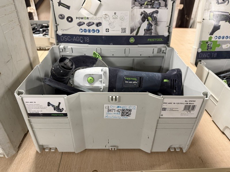 Merk: Festool Product: Accu tegelslijper in Systainer Conditie: gebruikt Specificaties: Let op! Zonder accu en lader.