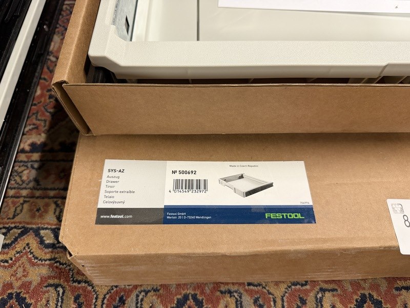 Merk: Festool Product: Uittreklade Specificaties: 2x nieuw, 7x gebruikt.