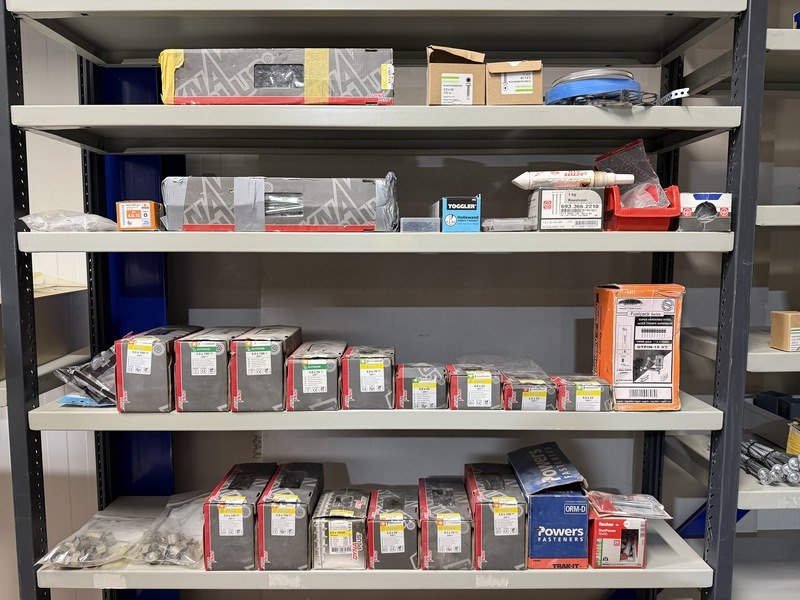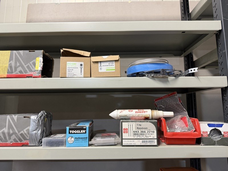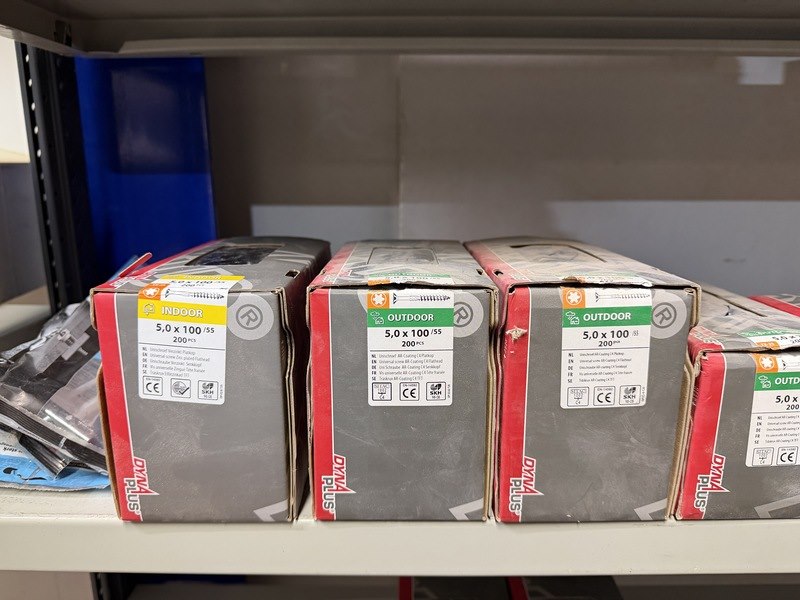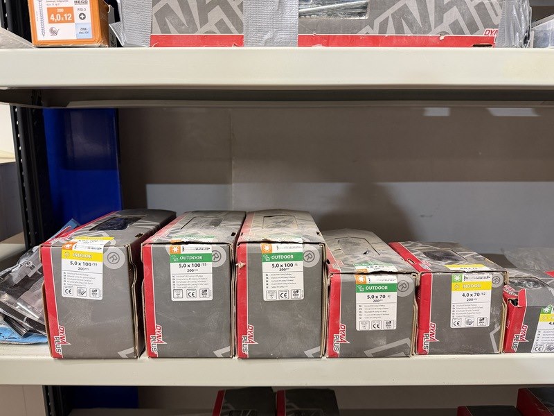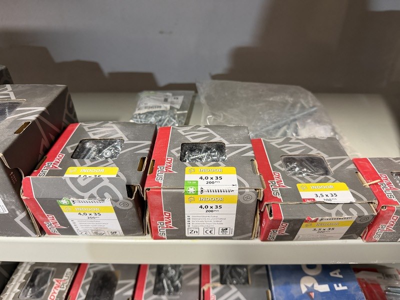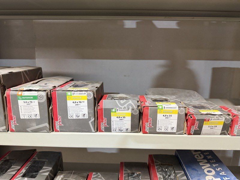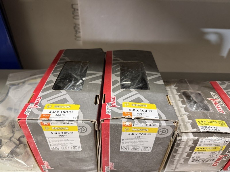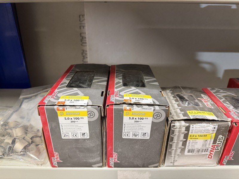 Merk: w.o. DYNA PLUS, HJZ, Fischer Product: Partij ijzerwaren w.o. schroeven, spijkers, pluggen Specificaties: Nieuw. Sommige verpakkingen zijn aangebroken.