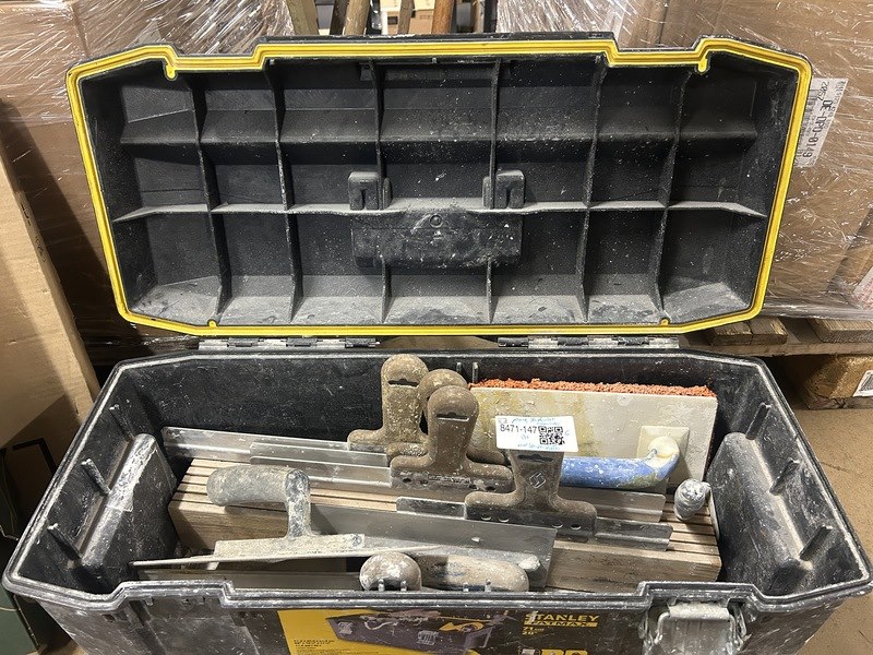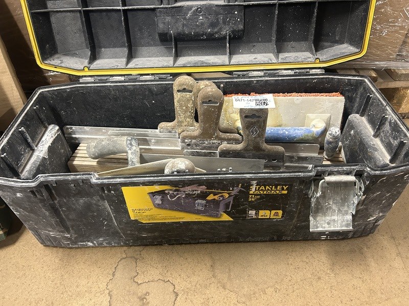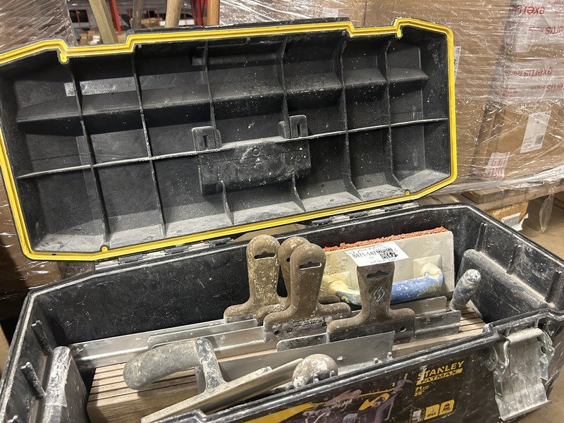 Product: Stanley gereedschapskoffer met inhoud stukadoor gereedschap Conditie: gebruikt Specificaties: Let op: de kavelbeschrijving is bepalend. Producten en materialen die op de achtergrond van de foto’s zichtbaar zijn, maken geen deel uit van de kavel. Pallets op achtergrond maken geen deel uit van deze kavel.
