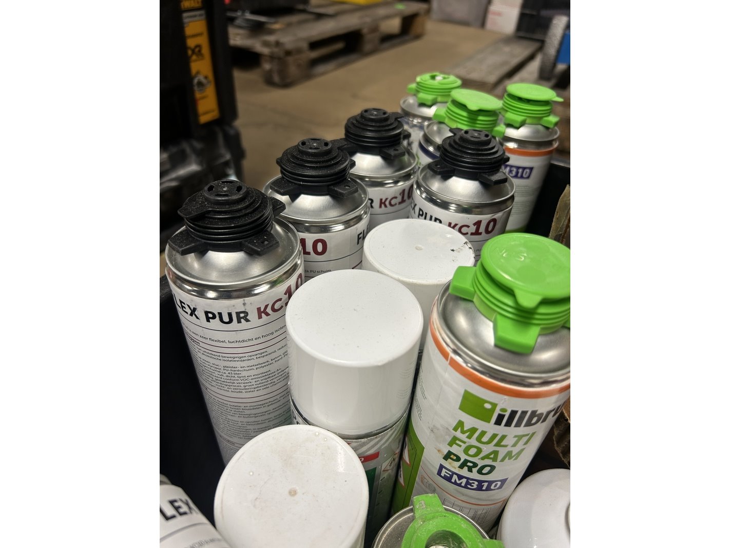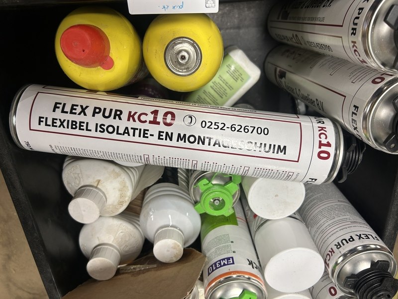 Product: Partij spuitbussen in krat w.o. pur Specificaties: Nieuw en gebruikt.