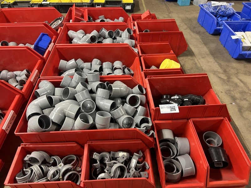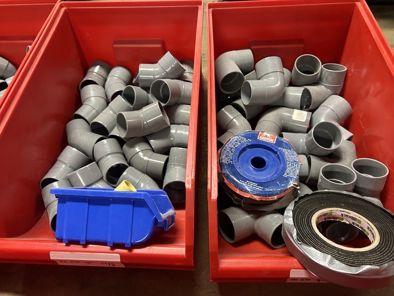 Product: Assortimentsbak met diverse koppelingen, hulpstukken Specificaties: Nieuw en gebruikt.