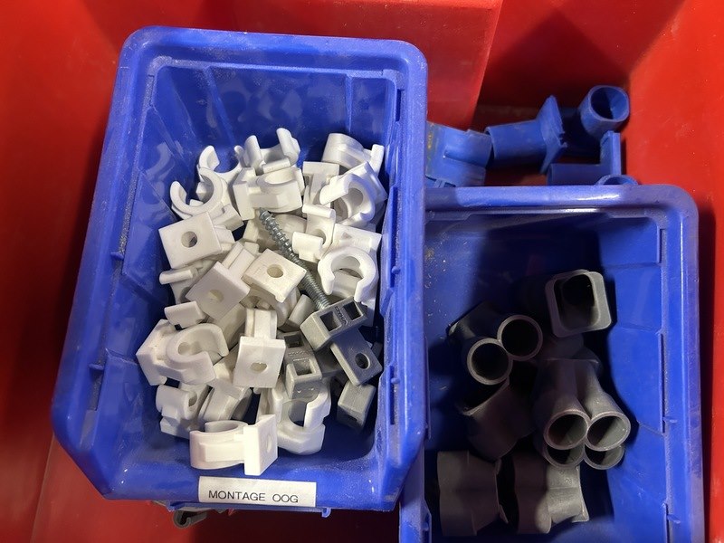 Product: Assortimentsbak met divers installatiemateriaal Specificaties: Nieuw en gebruikt.