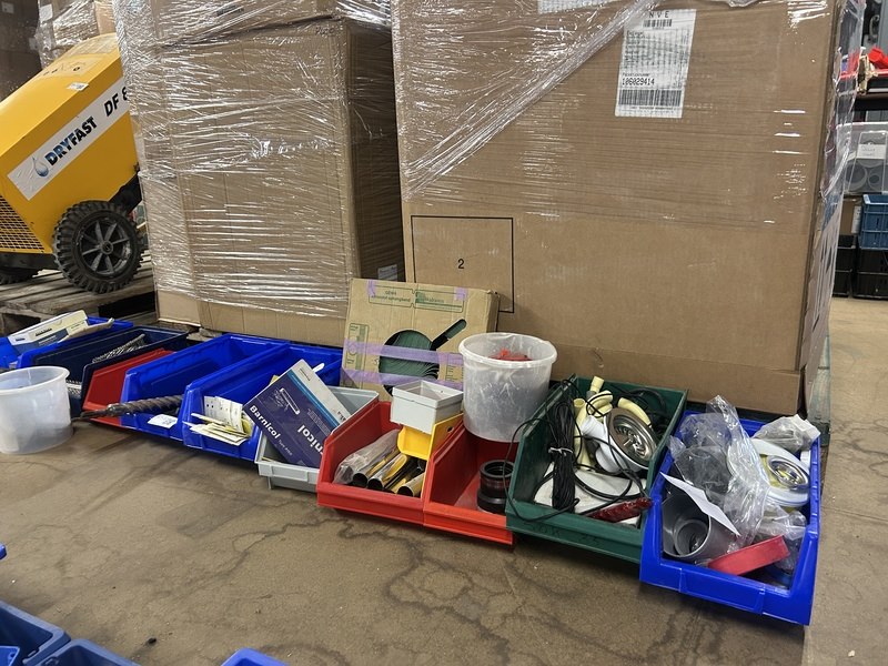 Ca. 10x assortimentsbak met diverse bouwmaterialen