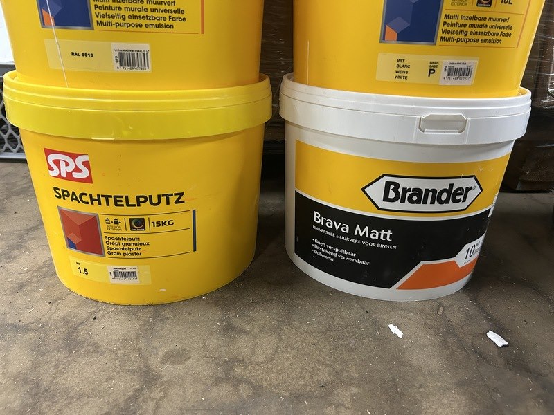 Merk: SPS, Brander, Bouwmaat Product: Diverse muurverf voor binnen Specificaties: Nieuw en gebruikt.