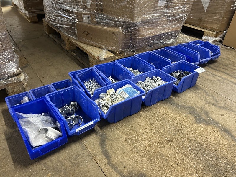 Ca. 18x assortimentsbak met divers installatiemateriaal