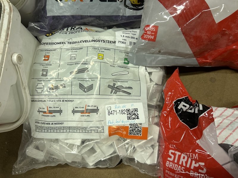 Merk: w.o. Rubi, Straxxo Product: Partij levelling clips, tegelclips Conditie: nieuw