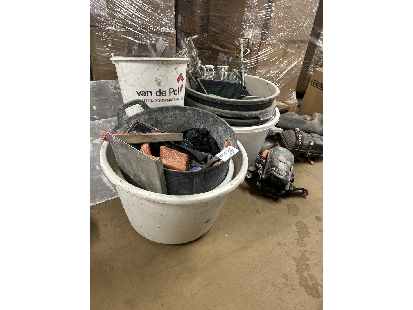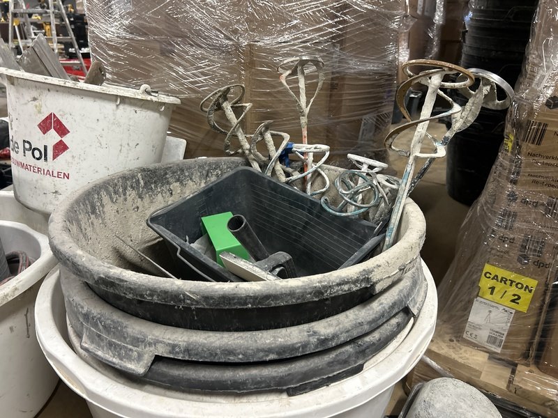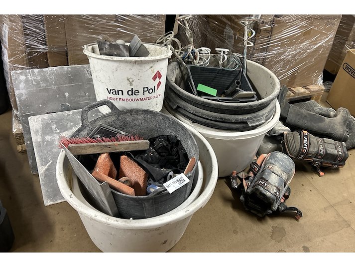 Product: Partij stukadoorsgereedschap Conditie: gebruikt Specificaties: Let op: de kavelbeschrijving is bepalend. Producten en materialen die op de achtergrond van de foto’s zichtbaar zijn, maken geen deel uit van de kavel. Pallets op achtergrond maken geen deel uit van deze kavel.