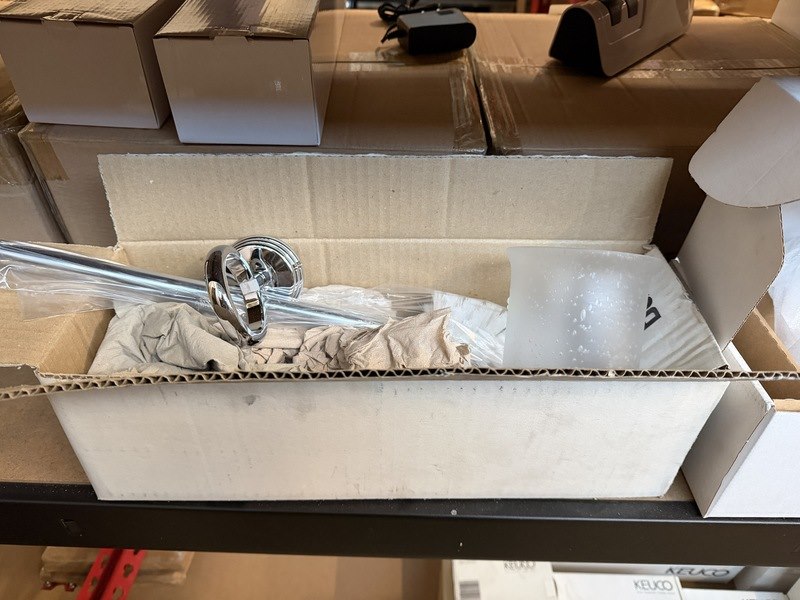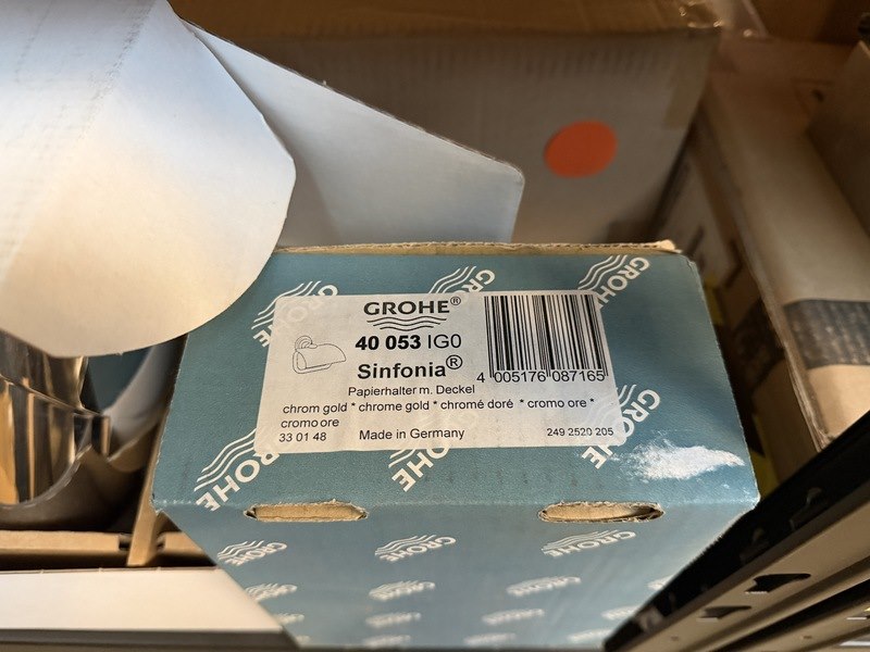 Merk: w.o. Grohe, Hansgrohe Product: Sanitair/badkamer accessoires en toebehoren Conditie: nieuw Specificaties: Enkele verpakkingen zijn beschadigd.
