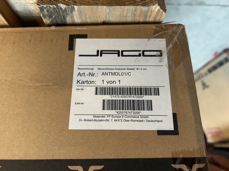 Merk: Jago Product: Menselijk anatomie skelet 181,5cm Conditie: nieuw