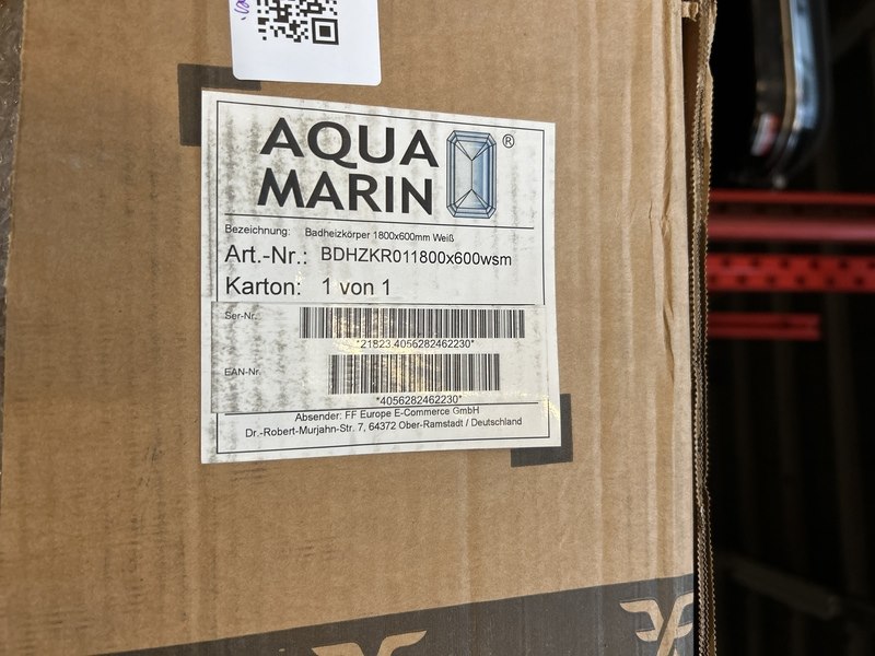 Merk: Aquamarin Product: Badkamer radiator Specificaties: Showroom model. Verpakking beschadigd.