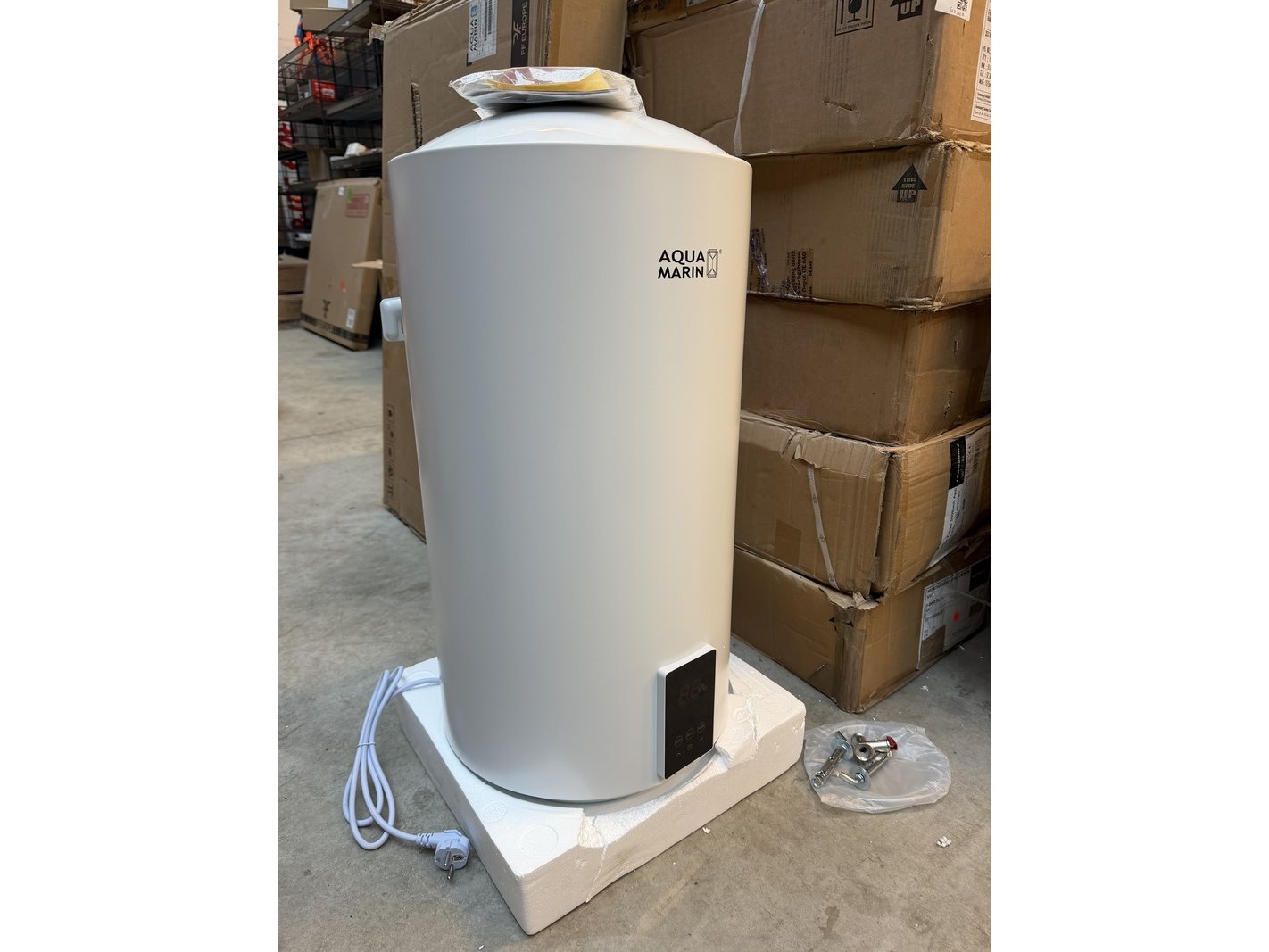 Merk: Aquamarin Product: Elektrische boiler 50 liter Specificaties: Showroom model. Beschadigd.