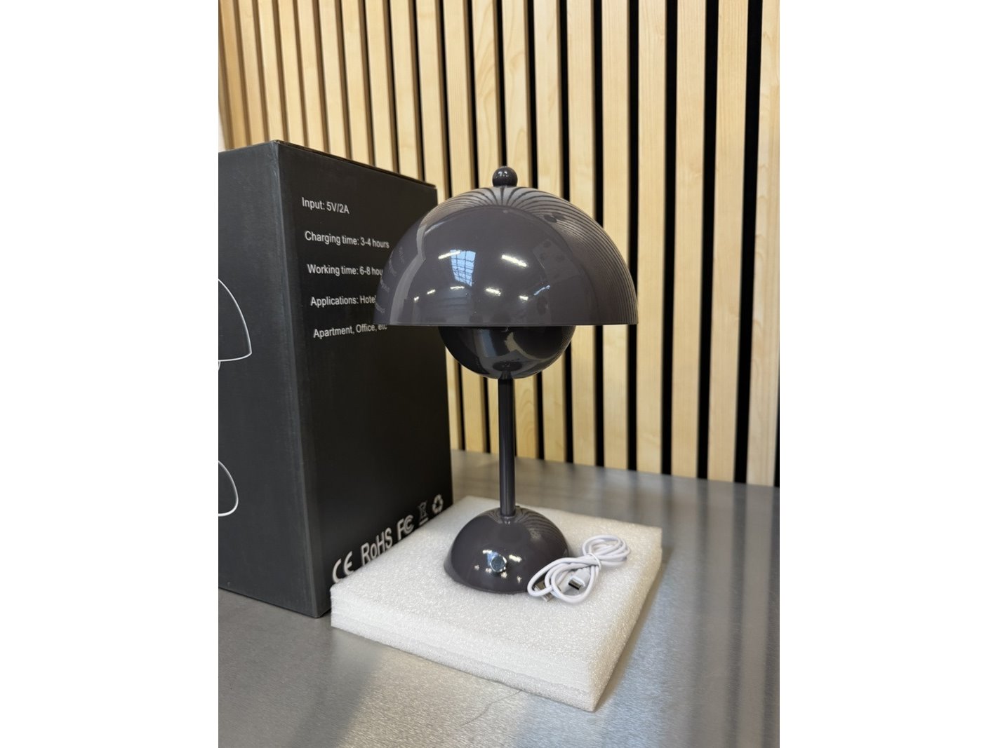 Product: Design tafellamp dimbaar en oplaadbaar via USB-C Kleur: donkergrijs Conditie: nieuw