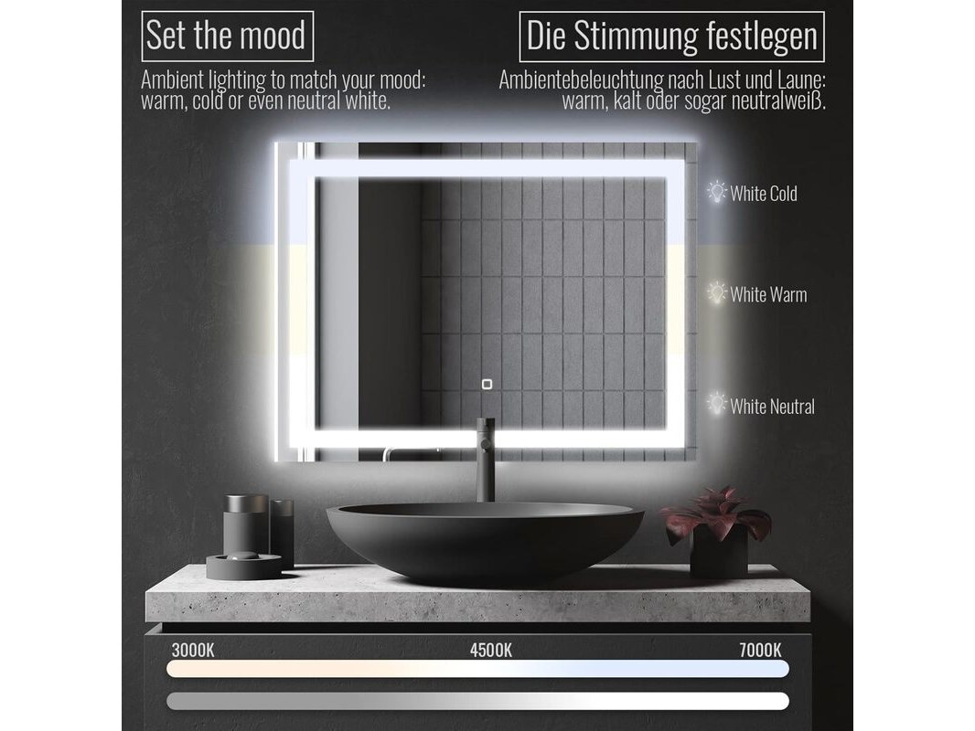 Led badkamerspiegel 90x60 cm a++ dimbaar aquamarin