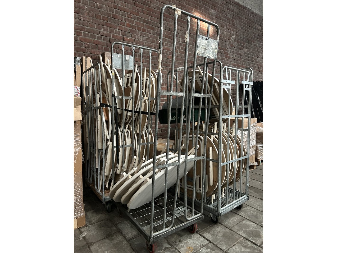 Product: Partij statafels inclusief rolcontainers Conditie: gebruikt
