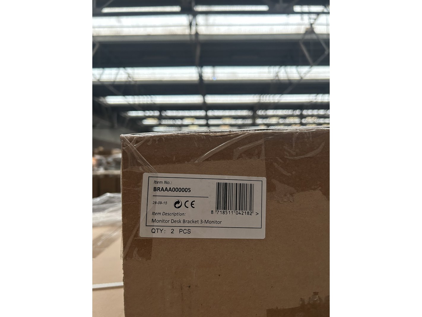 Merk: Sam Creative Product: Monitor bureausteun 3 monitoren 3x scherm 13"-27" Conditie: nieuw Specificaties: 5 dozen van 2. 10 totaal.