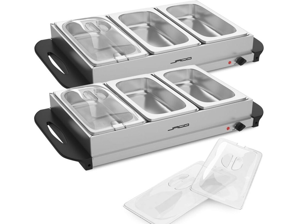 Merk: JAGO Product: Buffetwarmer (2x 3x2.5L, 1x 2x2.5+2x1L) Specificaties: Nieuw en showroom modellen.