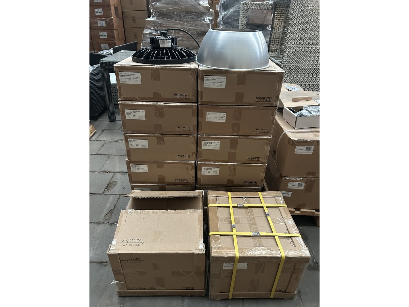 Merk: Ellipz Lighting Product: High bay Light HBU 150W 5700K IP66 met industriële kap Conditie: nieuw