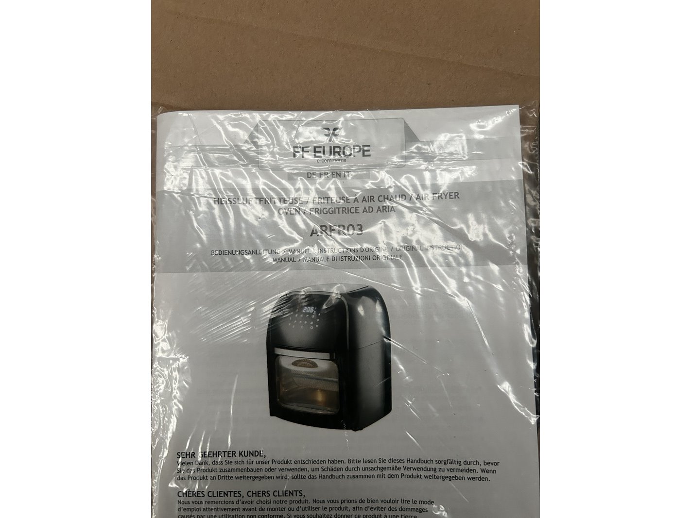 Merk: FF Europe Product: Airfyrer Conditie: nieuw Specificaties: Verpakking beschadigd.