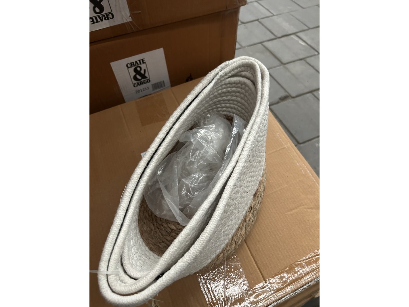 Merk: Crate & CarGo Product: Set van 2 manden katoen diameter 26 en 40 cm Conditie: nieuw