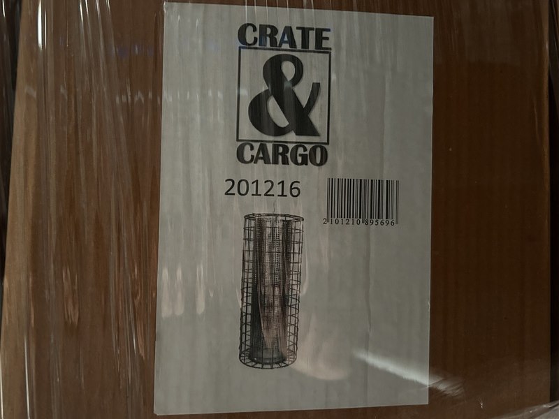 Merk: Crate & CarGo Product: Hanglamp/lampenkap metaal Afmeting: Lengte 60 cm Diameter 25,5 cm Conditie: nieuw Specificaties: Let op! Zonder bevestigingsmateriaal en snoer.